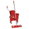 Description: Side-Press Restroom Mop Bucket FloorPack, 8gal, Plastic, Red