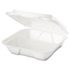 Description: Foam Hinged Carryout Container, 1-Compartment, White, 9-1/4x9-1/4x3, 100/Bag