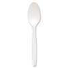Description: Mediumweight Polypropylene Teaspoons, White, Regal Design