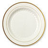 Masterpiece Plastic Plates, 9 in., Ivory w/Gold Accents, Round, 10/Pack