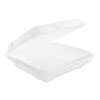 Description: Hinged Carryout Containers, Foam, White, Vented, 9 1/4W x 9 1/4D x 3H