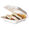 Description: Sugarcane Compostable Clamshell Food Container, 3 x 8 x 8, White