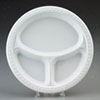 Description: Plastic Plates, 10 1/4 in., White, Round, 3 Compartments, Heavyweight, 125/Pack