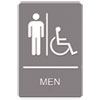 Description: ADA Sign Men Restroom Wheelchair Accessible Symbol, Plastic, 6 x 9, Gray