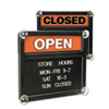Description: Double-Sided Open/Closed Sign w/Plastic Push Characters, 14 3/8 x 12 3/8