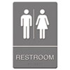 ADA Sign Restroom Symbol Tactile Graphic, Plastic, 6 x 9, Gray