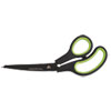 Description: Industrial Scissors, 8" Length, Bent, Black Carbon Coated Blades, Black/Blue
