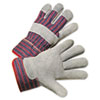 Description: Leather Palm Work Gloves, Gray/Blue/White