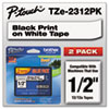Description: TZe Standard Adhesive Laminated Labeling Tapes, 1/2w, Black on White, 2/Pack