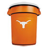 Description: Team Brute Round Container w/Lid, Texas Longhorns, 32 Gal, Plastic, Orange/White