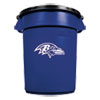 Team Brute Round Container w/Lid, Ravens,32Gl, Plastic, Bright Plum/White/Black